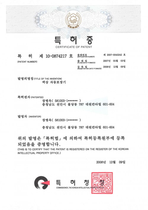 액상 자동포장기 특허 제10-0874217호 페이지 정보 작성자 금성정밀(주) 댓글 0건 조회 480회 작성일 18-11-02 15:18 본문 액상 자동포장기 특허 제10-0874217호 목록 이전글액상 자동포장기 디자인등록 제30-0472359호 18.11.02 다음글파우치 테스트 시스템 특허 제10-1468161호 18.11.02