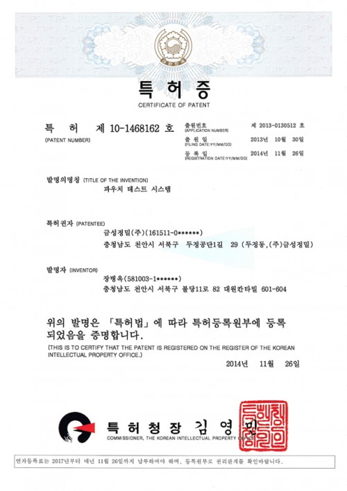 파우치 테스트 시스템 특허 제10-1468162호 페이지 정보 작성자 금성정밀(주) 댓글 0건 조회 476회 작성일 18-11-02 15:17 본문 파우치 테스트 시스템 특허 제10-1468162호 목록 이전글파우치 테스트 시스템 특허 제10-1468161호 18.11.02 다음글파우치형 액체저장 용기의 스파우트 실링장치 특허 제10-1485151호 18.11.02